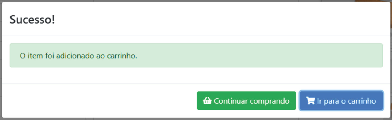 Em seguida, clique no botão “Comprar”. A partir daí, você terá duas opções: continuar comprando ou finalizar a compra. Veja: